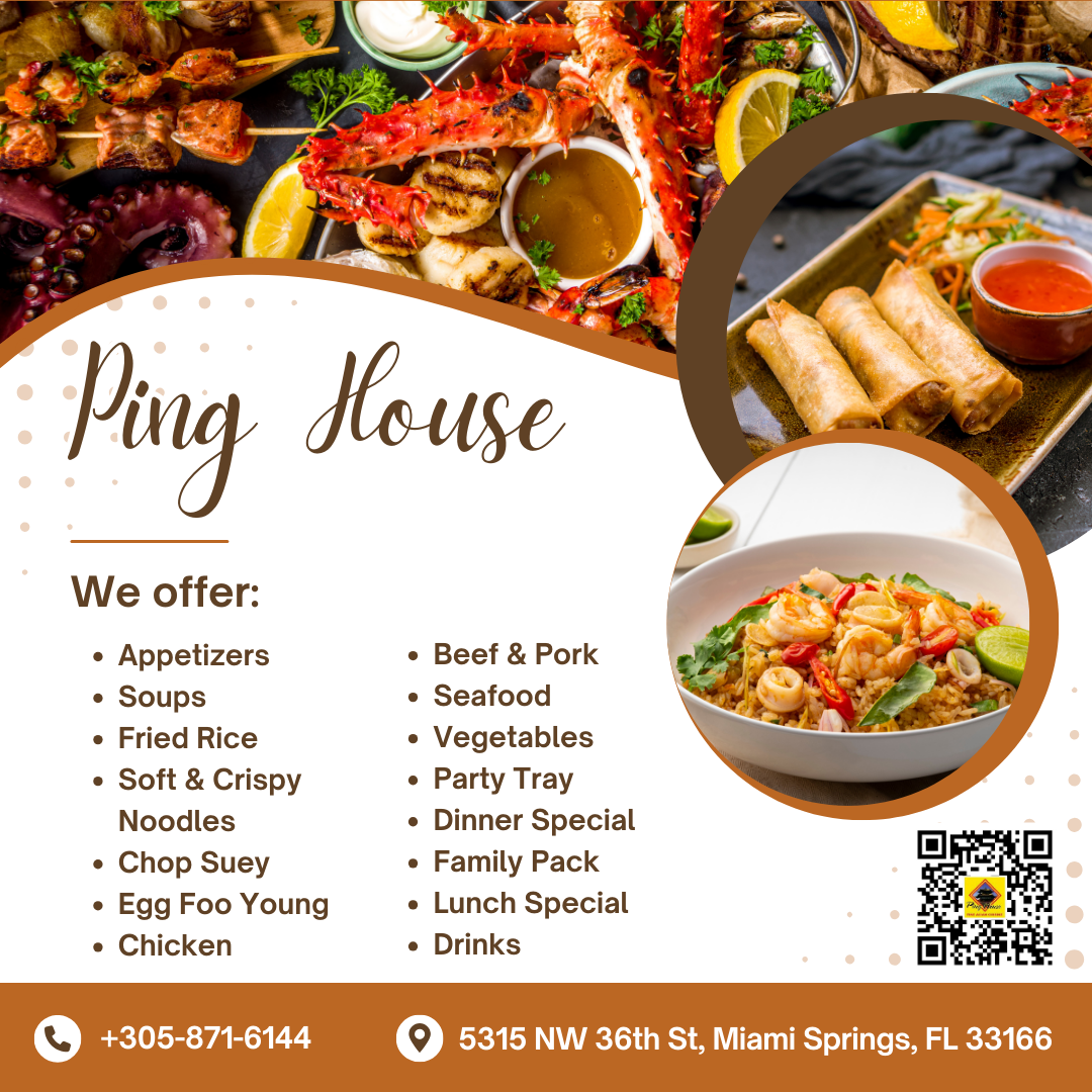 When you're in the mood for a cozy meal packed with flavors, the Ping House Menu has just what you need. Located at 5315 NW 36th St, Miami Springs, FL, this spot offers a delightful selection of dishes that blend tradition with a touch of modern flair. From savory appetizers to hearty main courses, each dish is crafted with fresh ingredients and a passion for great flavors. Whether you're craving something light or looking to indulge, Ping House provides a variety of options that cater to every taste. The menu offers a range of flavorful choices, all designed to satisfy and leave you coming back for more. Perfect for a casual outing or a quick bite, this spot has become a local favorite for good reason.